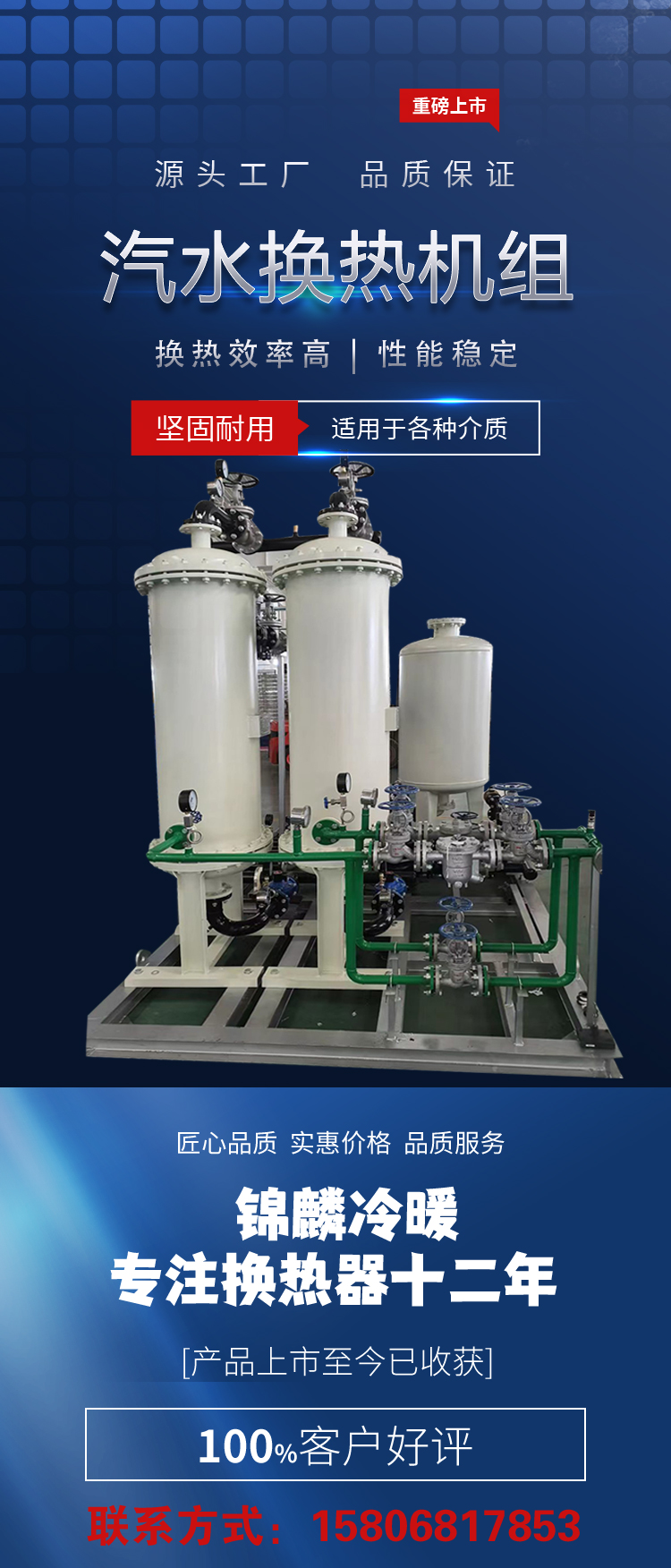 公司長期供應定制:換熱器、換熱機組、供水設備、水處理設備、過濾除污設備、水箱、冷卻塔及其他冷暖設備。公司致力于以政府機關、企業、商場、醫院、學校、家庭為一體,提供一站式冷暖/水處理項目解決方案。